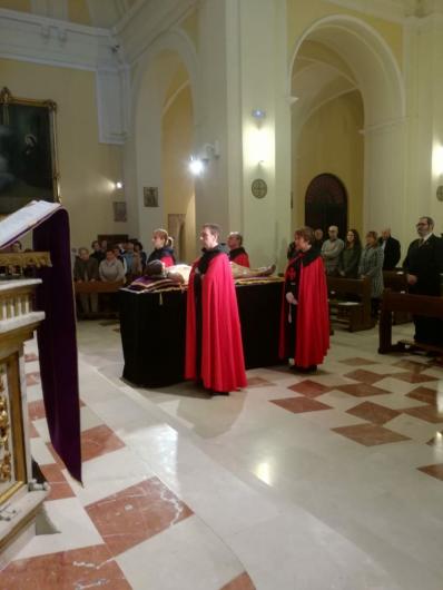 La Celebración estuvo preparada por la Cofradía y participaron varios hermanos, realizando la monición de entrada, lecturas, preces, accion de gracias... Por ultimo, toda la comunidad acompañamos al Cristo hasta su carroza, donde rezamos a dos coros el Miserere (Salmo 50)