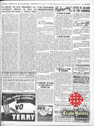 Nueva Alcarria de la época informa sobre la procesión de la Saman Santa de 1948