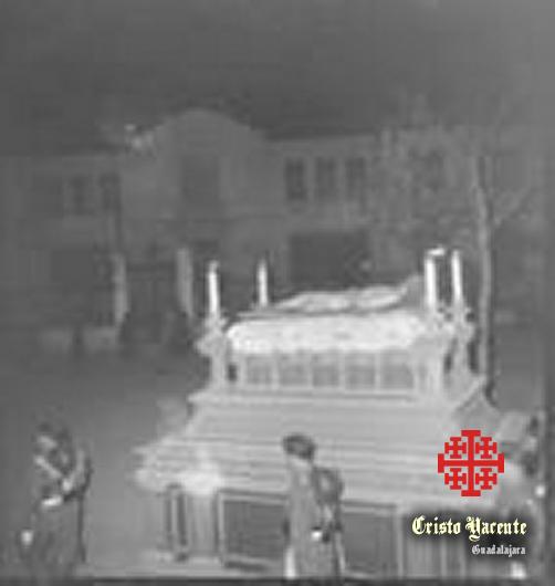Durante los PRIMEROS AÑOS de procesión, el paso sin carroza, era portado a hombros por cuatro hermanos. Años más tarde se sacaba en carroza de ruedas empujada por los hermanos. Desde 1.948 hasta 1.998 el Paso era ACOMPAÑADO por miembros del Ejército o de la Guardia Civil.
