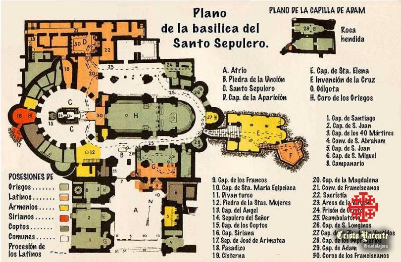 Los caballeros del Santo Sepulcro continuaron batallando contra los musulmanes hasta el punto que el rey Jaime I el Conquistador los hizo objeto de grandes y ricas mercedes. Para indicar la descendencia de la orden al Patriarca de Jerusalén, en las iglesias de esta Orden siempre se ostentaba en su fachada la cruz patriarcal de doble traviesa.Por el breve pontificio de 1.907, el Papa Pío X se reservó el Gran Maestrazgo de la Orden, nombrando lugarteniente suyo al Gran Patriarca latino de Jerusalén.