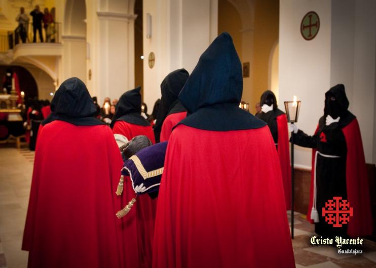 20,30 horas: Cofradía del Cristo Yacente del Santo Sepulcro, con su imagen titular y la Cruz Desnuda de Jerusalén.